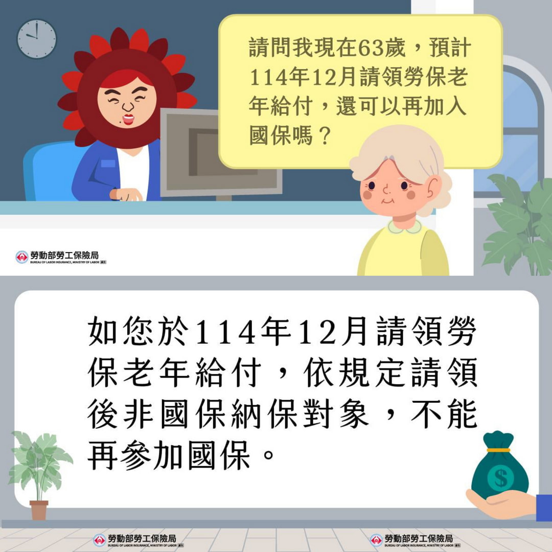 【勞保】自112年10月1日以後,領取相關社會保險老年給付者,不得再參加國民年金保險。