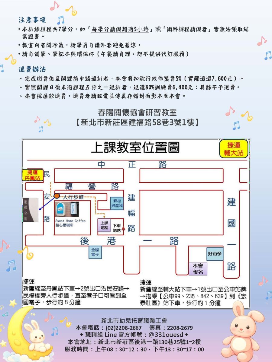 | 課程地點 | 新北市新莊區建福路58巷3號1樓 |